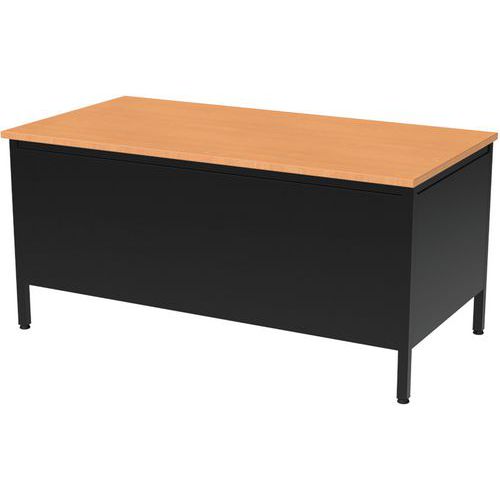 Escritorio con cajonera de 3 cajones Confort 2. Patas de tubo cuadrado de 35 x 35 x 2 mm con refuerzo metálico en las esquinas. Patas ajustables de material sintético. Sólida estructura metálica de chapa de 1,5 mm. Las partes metálicas están pintadas con polvo de epoxi-poliéster. Altura fija del escritorio: estándar a 75 cm (incl. tope de 25 mm).