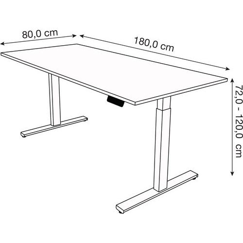 Escritorio de altura ajustable de 72 cm a 120 cm. Tablero superior melaminado de ABS de 19 mm. Estructura de acero y pata en forma de T. Funcionalidad de memoria: 4 alturas pregrabables para un ajuste sencillo. Se monta a una velocidad de 36 mm/segundo.