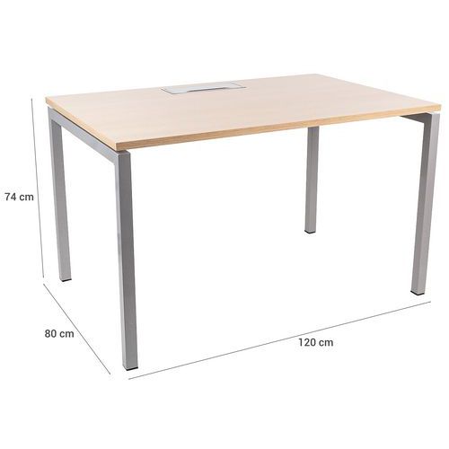Escritorio recto Misao con patas en U. Tablero de aglomerado recubierta de melamina de 25 mm con cantos de ABS de 2 mm. Escritorio con abertura para la gestión de cables. Fácil de montar y desmontar.