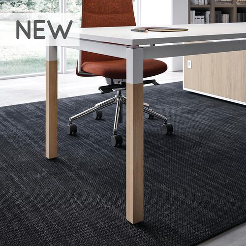 - Escritorio recto con patas en forma de L en dos colores.
