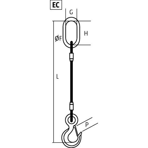 Eslinga de cable de acero 1 ramal - 1 malla simple + gancho de ojal con lengüeta - Capacidad 250 a 7200 kg