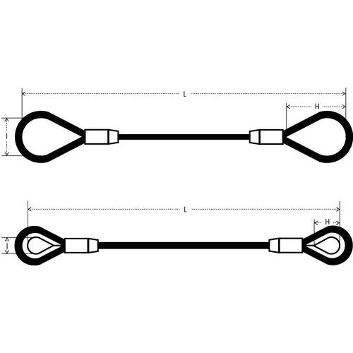 Eslinga de cable de acero inoxidable de 1 ramal - - Gazas simples - Capacidad 200 a 3200 kg
