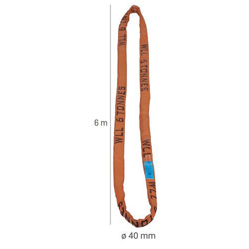 Eslinga redonda sin fin, CMU: 6000 kg, Longitud útil: 6 m, Diámetro Ø: 40 mm, Modelo: Redondo, Color: Marrón Eslinga redonda sin fin, CMU: 6000 kg, Longitud útil: 6 m, Diámetro Ø: 40 mm, Modelo: Redondo, Color: Marrón