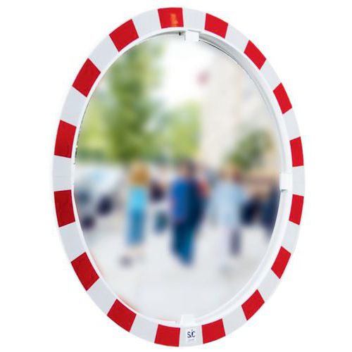 Espejo de seguridad antivaho con dorso y marco de PVC.