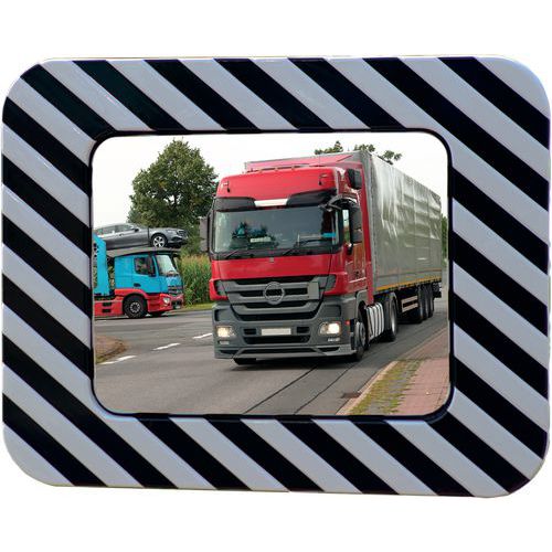 Espejo vial inox marco negro/blanco, Distancia observación: 15 m, Forma: Rectángulo