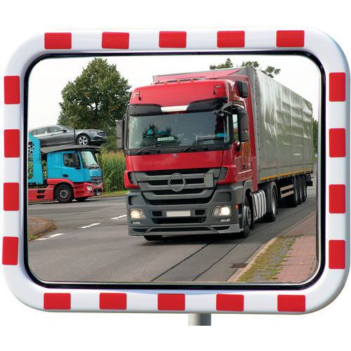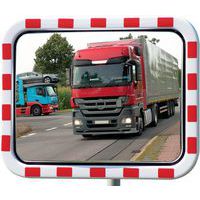 Espejo de tráfico de acero inoxidable con marco rojo/blanco, Distancia observación: 22 m, Forma: Rectángulo