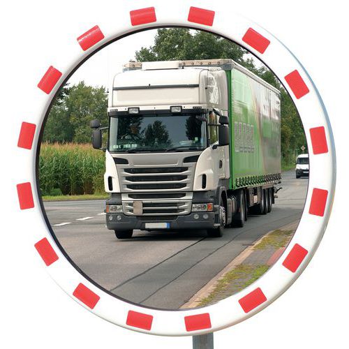 Espejo de tráfico de acero inoxidable con marco rojo/blanco, Distancia observación: 22 m, Forma: Redondo