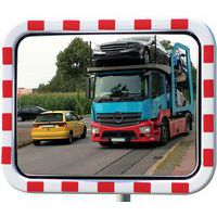 Espejo de tráfico de policarbonato con marco rojo/blanco, Distancia observación: 27 m, Forma: Rectángulo