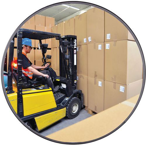 Espejo de vigilancia universal perfecto para áreas industriales, salidas de garaje, etc. Hecho de acrílico, más resistente a los impactos que el vidrio. Excelente reflejo de imágenes sin distorsión por metalización aplicada en la parte posterior. Resistente a golpes conforme a la norma DIN ISO 179-1. Certificado TÜV.