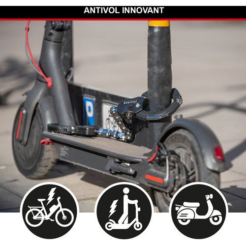 Ideal para patinetes eléctricos, bicicletas eléctricas, cochecitos de niños y esposas antirrobo.