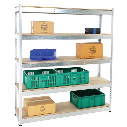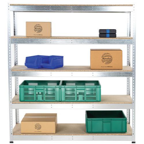 Estantería sencilla y ultrarresistente para el almacenamiento de todos sus archivos. Balda maciza de madera, perfecta para almacenar cajas o clasificadores. Bellos acabados resistentes al tiempo, a elegir entre epoxi azul o galvanizado. Estantería de almacén fácil de montar, sin necesidad de herramientas específicas.