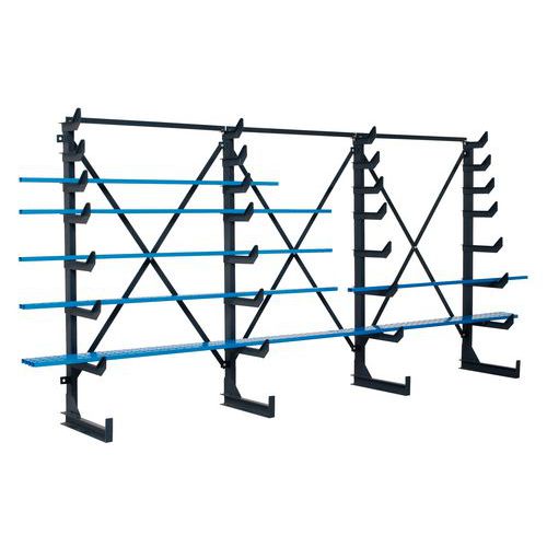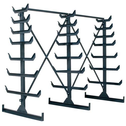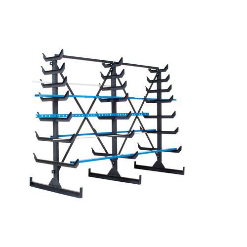 Estanterías con brazos de una y dos caras para cargas largas. Brazos con tope para evitar cualquier desplazamiento de las mercancías almacenadas. Montaje fácil y extensión ilimitada añadiendo uno o más elementos adicionales.