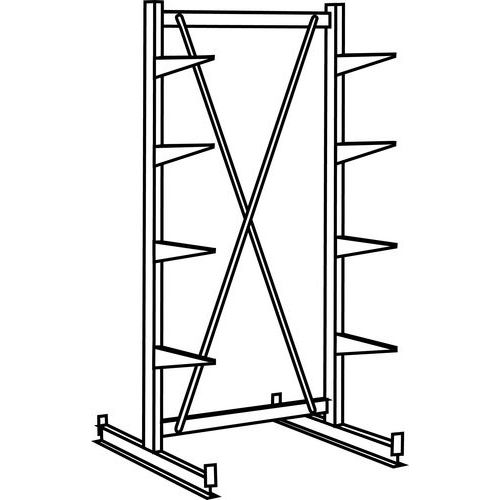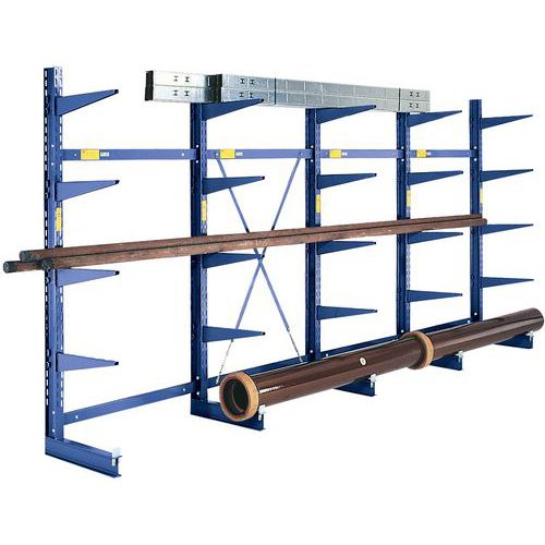 Estantería con brazos de una y dos caras para el almacenamiento de cargas largas. Brazos sin tope para llegar fácilmente a las mercancías colocadas en estanterías. Montaje fácil y extensión ilimitada añadiendo uno o más elementos adicionales.