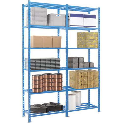 Estantería muy estable y con una gran capacidad de carga (hasta 2,5 t). Estante tubular para una excelente ventilación de objetos y un fácil mantenimiento. Extensión sencilla de la estantería añadiendo 1 o más kits adicionales.