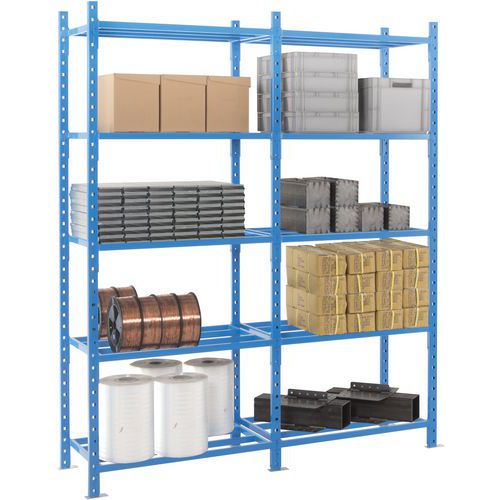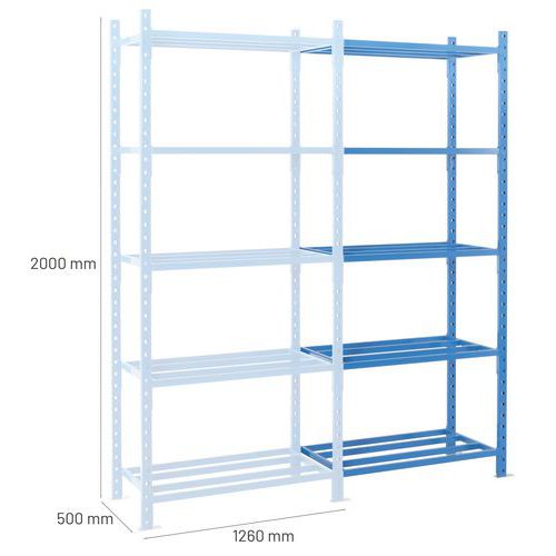 Estantería muy estable y con una gran capacidad de carga (hasta 2,5 t). Estante tubular para una excelente ventilación de objetos y un fácil mantenimiento. Extensión sencilla de la estantería añadiendo 1 o más kits adicionales.