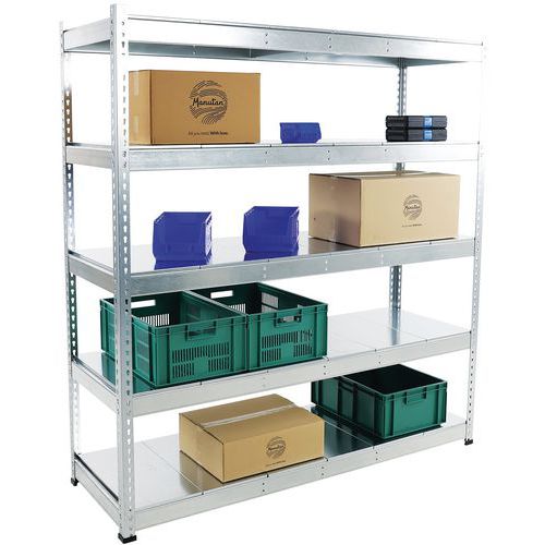 Estantería sencilla y ultrarresistente para el almacenamiento de todos sus archivos. Balda de acero galvanizado sólida para almacenar todas las cajas voluminosas. Bellos acabados resistentes al tiempo, a elegir entre epoxi azul o galvanizado. Estantería de almacén fácil de montar, sin necesidad de herramientas específicas.
