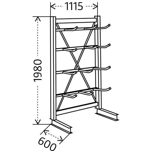 Estantería de brazos para bobinas Canti-Bobin's, Carga máx. por nivel: 60 kg, Altura: 1980 mm, N.º niveles: 4