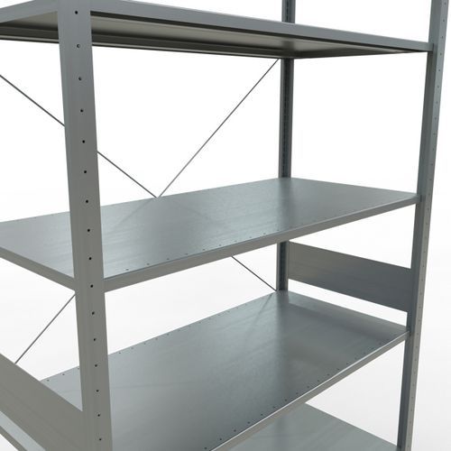 Estantería de almacén robusta, acabado galvanizado ultrarresistente a ambientes húmedos. Las baldas macizas de acero chapado pueden soportar mercancías de múltiples dimensiones. Estantería industrial fácil y rápida de montar por acoplamiento, sin herramientas concretas. Extensión de estantería sencilla con adición de 1 o varios elementos adicionales. Distancia entre perforaciones: 25 mm. Altura de la primera perforación: 50 mm. Altura de la primera perforación: 22,5 mm.