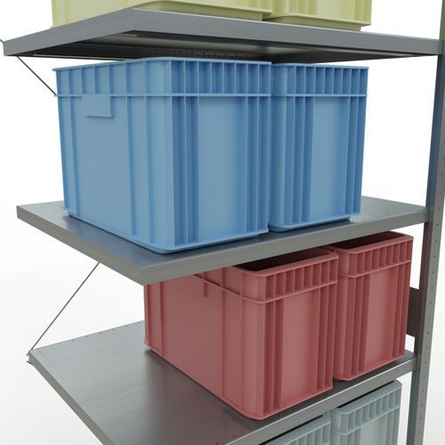 Estantería de almacén robusta, acabado galvanizado ultrarresistente a ambientes húmedos. Las baldas macizas de acero chapado pueden soportar mercancías de múltiples dimensiones. Estantería industrial fácil y rápida de montar por acoplamiento, sin herramientas concretas. Extensión de estantería sencilla con adición de 1 o varios elementos adicionales. Distancia entre perforaciones: 25 mm. Altura de la primera perforación: 50 mm. Altura de la primera perforación: 22,5 mm.