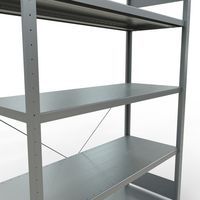 Estantería de almacén robusta, acabado galvanizado ultrarresistente a ambientes húmedos. Las baldas macizas de acero chapado pueden soportar mercancías de múltiples dimensiones. Estantería industrial fácil y rápida de montar por acoplamiento, sin herramientas concretas. Extensión de estantería sencilla con adición de 1 o varios elementos adicionales. Distancia entre perforaciones: 25 mm. Altura de la primera perforación: 50 mm.   Altura de la primera perforación: 22,5 mm.