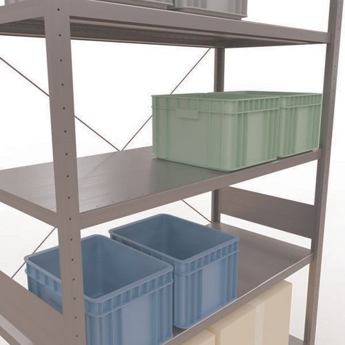 Estantería de almacén robusta, acabado galvanizado ultrarresistente a ambientes húmedos. Las baldas macizas de acero chapado pueden soportar mercancías de múltiples dimensiones. Estantería industrial fácil y rápida de montar por acoplamiento, sin herramientas concretas. Extensión de estantería sencilla con adición de 1 o varios elementos adicionales. Distancia entre perforaciones: 25 mm. Altura de la primera perforación: 50 mm. Altura de la primera perforación: 22,5 mm.