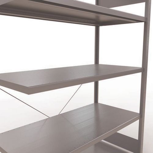 Estantería de almacén robusta, acabado galvanizado ultrarresistente a ambientes húmedos. Las baldas macizas de acero chapado pueden soportar mercancías de múltiples dimensiones. Estantería industrial fácil y rápida de montar por acoplamiento, sin herramientas concretas. Extensión de estantería sencilla con adición de 1 o varios elementos adicionales. Distancia entre perforaciones: 25 mm. Altura de la primera perforación: 50 mm. Altura de la primera perforación: 22,5 mm. Carga máx. (kg) : 1600 kg Schulte LBE Balda carga maxi (kg) : 250 kg