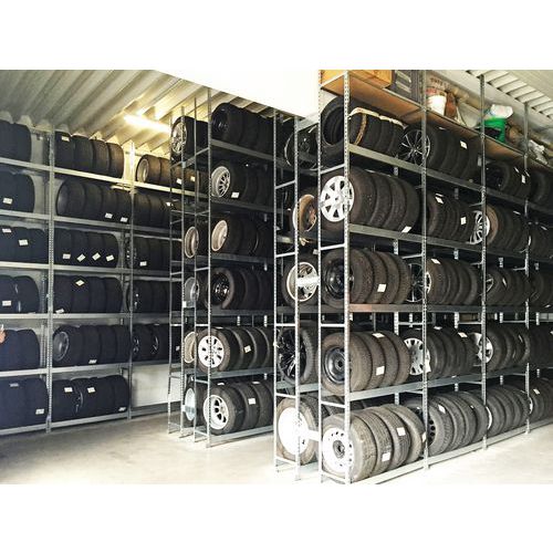 Sólida estantería metálica para neumáticos, de una y dos caras. 3 tipos de acabado: pintura epoxi gris, azul o galvanizado. Estantería de almacén fácil de montar, sin necesidad de herramientas específicas.