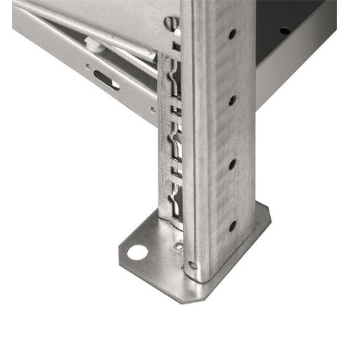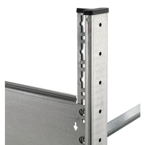 Composición: 4 o 2 montantes (4 elementos de partida, 2 elementos adicionales), 6, 8 o 10 largueros en función de la altura de la estantería, kit de tornillos completo (sin incluir la fijación al suelo), instrucciones de montaje.