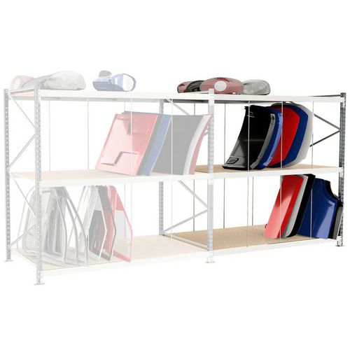 Estantería diseñada para almacenar cargas de peso medio y objetos voluminosos. Gestione su espacio de almacenamiento con elementos adicionales que pueden conectarse a la unidad básica para crear unidades de almacenamiento compuestas por diferentes tramos. Compuesto por 2 marcos frontales perforados, vigas con conectores soldados y opciones de revestimiento de estantes, sus versátiles configuraciones le permiten adaptar el producto a sus necesidades específicas. Altamente versátil: EPSIVOL es apto para todos los tipos de entornos y productos, y ofrece una solución de almacenamiento rápido y manual. Cumple con las normas FEM 10.2.06 de la Unión Europea relativas a los productos de almacenamiento.