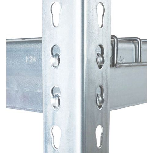 Estantería industrial sencilla y ultrarresistente para almacenamiento de mercancías pesadas. Balda de rejilla ideal para el almacenamiento ventilado y/o en una zona de almacenamiento equipada con aspersores. Acabado galvanizado para zonas húmedas o pintura epoxi, gris o azul, para entornos secos. Estantería de almacenamiento de montaje fácil y sin ayuda de técnicos y herramientas específicas.