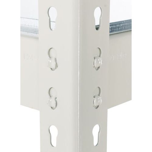 Estantería industrial sencilla y ultrarresistente para almacenamiento de mercancías pesadas. Balda maciza de acero perfecta para almacenar piezas a granel o productos grasientos. Acabado galvanizado para zonas húmedas o pintura epoxi, gris o azul, para entornos secos. Estantería de almacenamiento de montaje fácil y sin ayuda de técnicos y herramientas específicas.