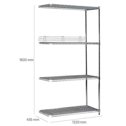 Sistema de estantería modular, higiénico y estético. Balda de rejilla regulable en altura gracias a los clips de vinilo. Gran estabilidad en todos los soportes gracias a las patas regulables. Estantería de almacenamiento fácil de montar y con una fácil extensión.