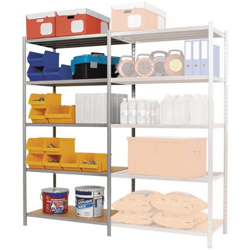 Sólida estantería de acero con estructura tubular para almacén. Estantería estable sin refuerzo en cruz para facilitar el acceso por ambos lados (2 caras). Montante con perforaciones en T (40x37 mm) no visibles por el frontal. Acabado epoxi o galvanizado: resistencia a golpes, rayas y humedad. Pie de plástico bajo el montante: buena estabilidad del conjunto y protección del suelo. Balda tubular totalmente soldada, con 4 conectores de excusa a los extremos. Ideal para almacenes, garajes y talleres.