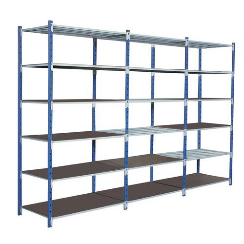 Estantería de archivos pensada para optimizar al máximo la capacidad de almacenamiento. Ampliable y modulable con ajuste/desplazamiento de baldas sin desmontar el conjunto. Balda tubular totalmente soldada para conectarla simplemente en los postes. Muy estable, sin necesidad de travesaño, utilizable en cara simple y doble. Estantería de archivos de montaje fácil, sin tornillos, sin bulones ni herramientas. Ideal para clasificadores, libros y cajas archivadoras