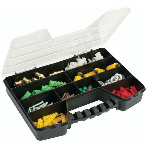 Maletín con compartimentos fijos – Manutan Expert Disponible con 9 o 15 compartimentos fijos. Tapa transparente para identificar rápidamente el contenido.