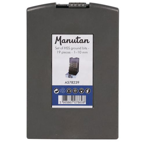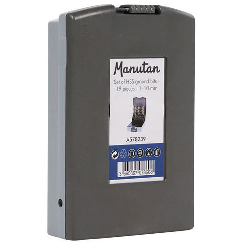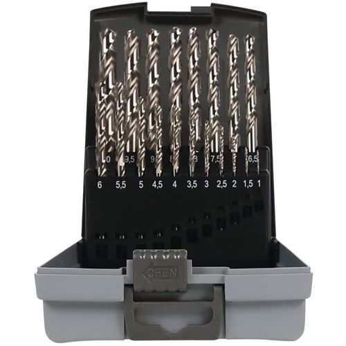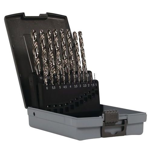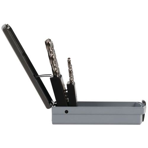 | Nombre del producto | Estuche de 19 brocas cilíndricas HSS, tallado afilado, Nº de piezas: 19, Utilización: Taladrado |