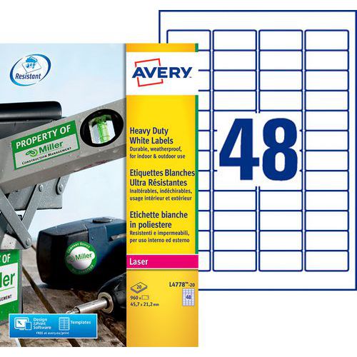 Etiqueta autoadhesiva ultrarresistente blanca - Impresión láser Etiqueta autoadhesiva ultrarresistente blanca - Impresión láser