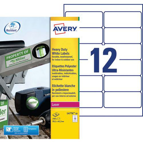 Etiqueta autoadhesiva ultrarresistente blanca, N.º de etiquetas/plancha: 12, Nº de etiquetas: 240 Etiqueta autoadhesiva ultrarresistente blanca, N.º de etiquetas/plancha: 12, Nº de etiquetas: 240