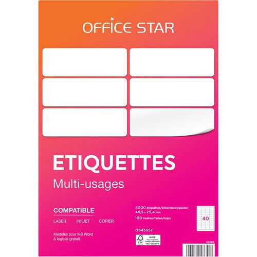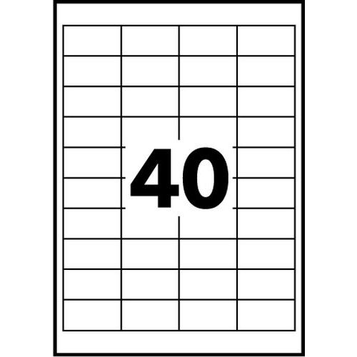 Etiqueta multiusos, N.º de etiquetas/plancha: 40, Nº de etiquetas: 4000, Longitud Etiqueta: 48.5 mm Etiqueta multiusos, N.º de etiquetas/plancha: 40, Nº de etiquetas: 4000, Longitud Etiqueta: 48.5 mm