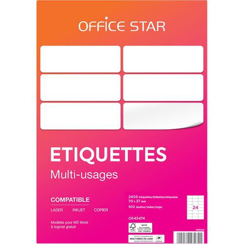 Etiqueta multiusos, N.º de etiquetas/plancha: 24, Nº de etiquetas: 2400, Longitud Etiqueta: 70 mm Etiqueta multiusos, N.º de etiquetas/plancha: 24, Nº de etiquetas: 2400, Longitud Etiqueta: 70 mm