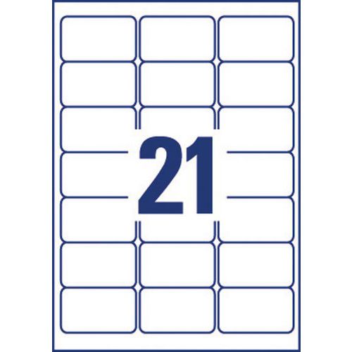 Etiqueta reciclada blanqueada sin cloro, fácil de despegar de su soporte. Compatible con todas las marcas de impresoras láser. Esquinas redondeadas.