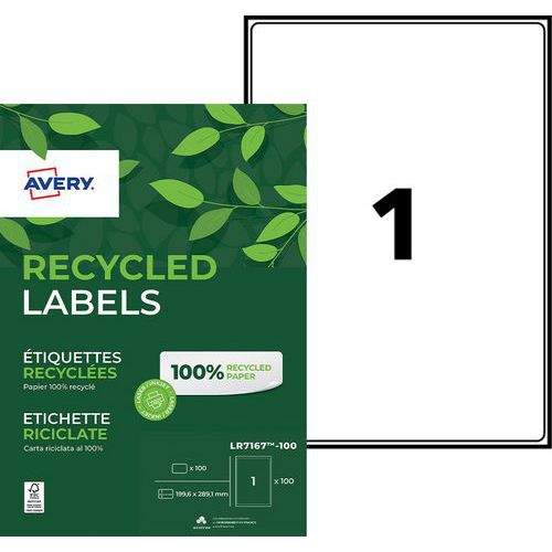 Etiqueta reciclada Avery, N.º de etiquetas/plancha: 1, Nº de etiquetas: 100, Longitud Etiqueta: 199.6 mm Etiqueta reciclada Avery, N.º de etiquetas/plancha: 1, Nº de etiquetas: 100, Longitud Etiqueta: 199.6 mm