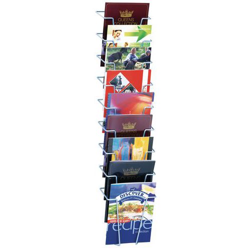 | Nombre del producto | Expositor de pared para folletos A5, Nº de compartimentos: 9, Color: Gris, Anchura total: 17 cm |