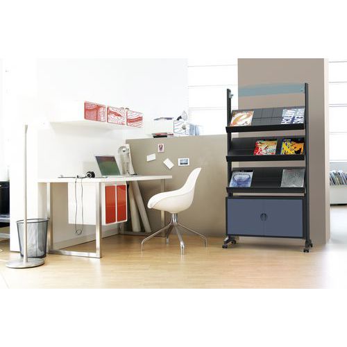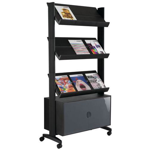 | Nombre del producto | Expositor móvil de folletos de 3 baldas con cajonera, N.º casillas/columna: 3, Color: Negro |