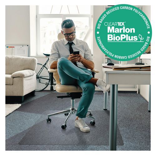 Con el doble de resistencia a impactos que el PVC, el policarbonato BioPlus ofrece una excelente protección a largo plazo de los suelos contra el desgaste y los daños permanentes causados por las ruedas de las sillas.