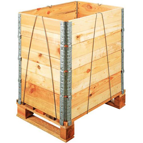 Sujeción de acero galvanizado para realce palé. Equilibrio estable de realces asociados en palé. Fabricado en la UE