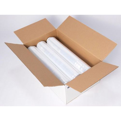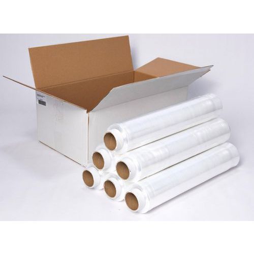 | Nombre del producto | Film estirable pretensado, Espesor: 6 µm, Longitud: 600 m, Ancho: 430 mm, Color: Transparente |