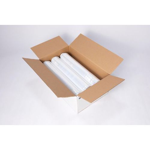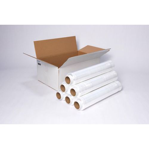 | Nombre del producto | Film estirable pretensado, Espesor: 8 µm, Longitud: 600 m, Ancho: 430 mm, Color: Transparente |