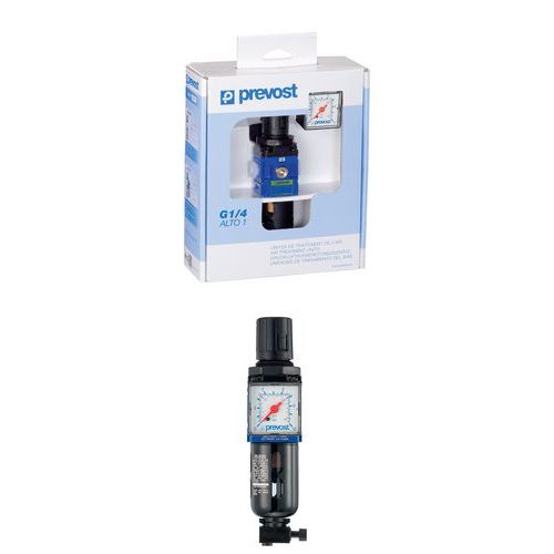 - Filtro regulador con manómetro y fijación.