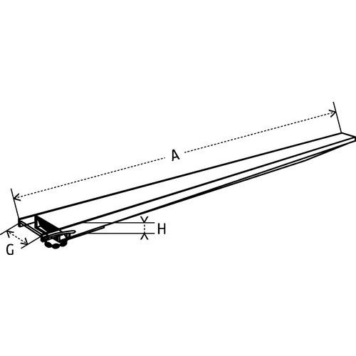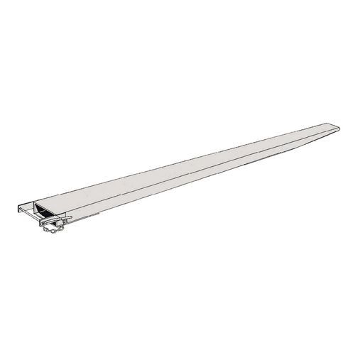 Instalación rápida e introducción directa mediante carretilla elevadora. Adecuada para cargas largas. Prolongaciones cerradas en las partes delantera y trasera para mejorar la rigidez. Bloqueo de las prolongaciones en la parte posterior de las horquillas para una seguridad óptima. La carga máxima se entiende como un peso repartido uniformemente a lo largo de la prolongación.